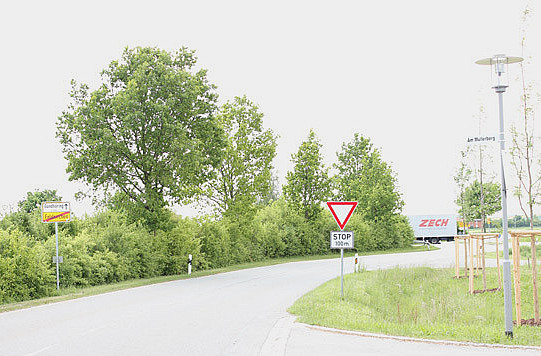Ortsteil Weiling, nach 300m Kreuzung geradeaus in die Wohnsiedlung